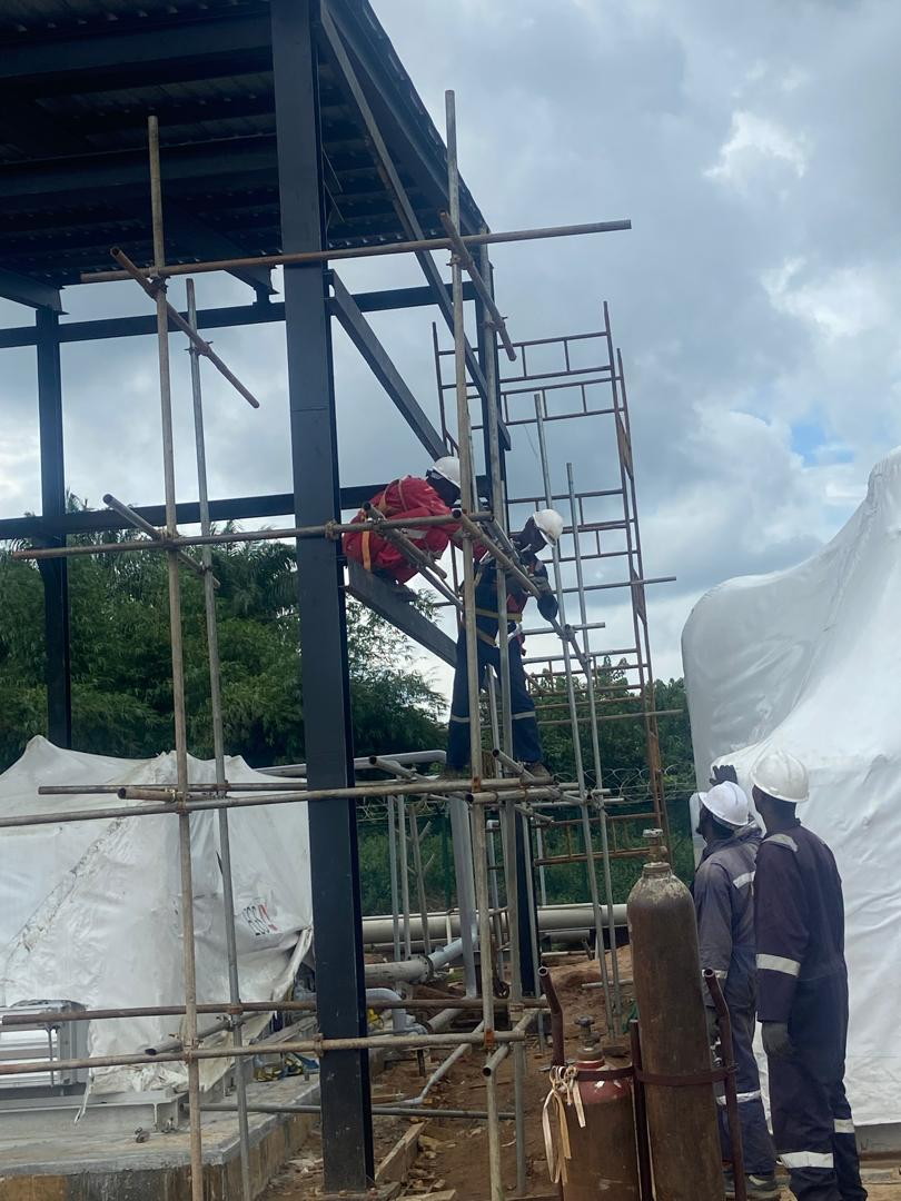 Fabrication and installation of compressor and VRU shelter structures, demonstrating coordinated delivery for field infrastructure projects.